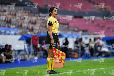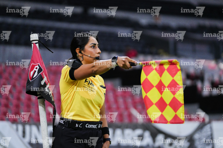 Zapopan, Jalisco, 15 de marzo de 2026. Damaris Jiménez, árbitro asistente, durante el partido correspondiente a la jornada 12 del torneo Clausura 2026 de la Liga BBVA MX Femenil, entre las Chivas Rayadas del Guadalajara y las Tuzas del Pachuca, realizado en el estadio Akron. Foto: Imago7/ Juan Carlos Cubeyro.