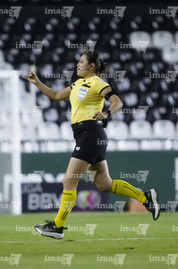 San Nicolás de los Garza, Nuevo León, 15 de marzo de 2026. Cesia Deysire Campos, árbitra central, durante el partido correspondiente a la jornada 12 del torneo Clausura 2026 de la Liga BBVA MX Femenil, entre las Tigres de la UANL y el Club Querétaro, realizado en el estadio Universitario. Foto: Imago7/David Arzamendi