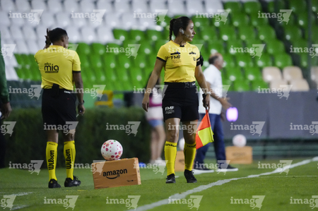 Torreón, Coahuila, 17 de marzo de 2026. Elva Gutiérrez Martínez, árbitra asistente, durante el partido correspondiente a la jornada 12 del torneo Clausura 2026 de la Liga BBVA MX Femenil, entre las Guerreras de Santos Laguna y la Máquina Celeste del Cruz Azul, realizado en el estadio Corona. Foto: Imago7/ Erick Saavedra