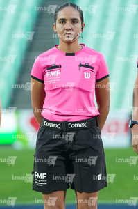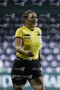 León, Guanajuato, 16 de marzo de 2026. Francia María González, árbitra central, durante el partido correspondiente a la jornada 12 del torneo Clausura 2026 de la Liga BBVA MX Femenil, entre las Esmeraldas del León y las Cañoneras del Mazatlán FC, realizado en el estadio León. Foto: Imago7/Sebastian Laureano Miranda