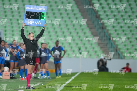 Torreón, Coahuila, 17 de marzo de 2026. Ana Cristina Guarneros, cuarta árbitra, durante el partido correspondiente a la jornada 12 del torneo Clausura 2026 de la Liga BBVA MX Femenil, entre las Guerreras de Santos Laguna y la Máquina Celeste del Cruz Azul, realizado en el estadio Corona. Foto: Imago7/ Erick Saavedra