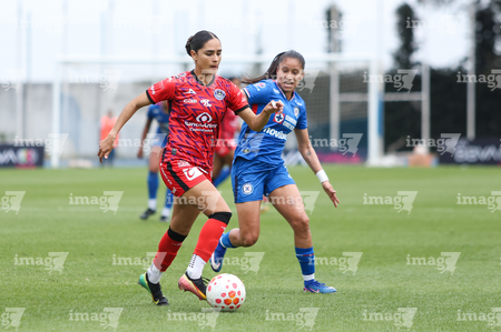 Cuernavaca, Morelos, 21 de marzo de 2026. Lucy Ortiz y Diana Salmoran, durante el partido correspondiente a la jornada 13 del torneo Clausura 2026 de la Liga BBVA MX Femenil, entre la Máquina Celeste del Cruz Azul y las Cañoneras del Mazatlán FC, realizado en el estadio de la Unidad Deportiva Centenario. Foto: Imago7/ Daniel Sydney