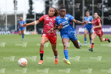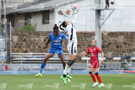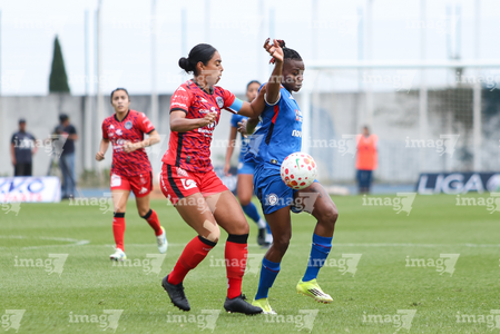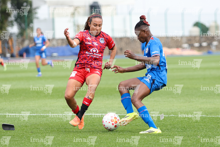 Cuernavaca, Morelos, 21 de marzo de 2026. Vasthy Delgado y Uchenna Kanu, durante el partido correspondiente a la jornada 13 del torneo Clausura 2026 de la Liga BBVA MX Femenil, entre la Máquina Celeste del Cruz Azul y las Cañoneras del Mazatlán FC, realizado en el estadio de la Unidad Deportiva Centenario. Foto: Imago7/ Daniel Sydney