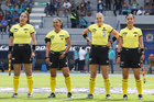 Cuernavaca, Morelos, 21 de marzo de 2026. Árbitras, durante el partido correspondiente a la jornada 13 del torneo Clausura 2026 de la Liga BBVA MX Femenil, entre la Máquina Celeste del Cruz Azul y las Cañoneras del Mazatlán FC, realizado en el estadio de la Unidad Deportiva Centenario. Foto: Imago7/ Daniel Sydney