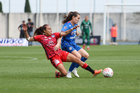 Cuernavaca, Morelos, 21 de marzo de 2026. Vanessa Sánchez y Daniela Calderón, durante el partido correspondiente a la jornada 13 del torneo Clausura 2026 de la Liga BBVA MX Femenil, entre la Máquina Celeste del Cruz Azul y las Cañoneras del Mazatlán FC, realizado en el estadio de la Unidad Deportiva Centenario. Foto: Imago7/ Daniel Sydney