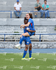 Cuernavaca, Morelos, 21 de marzo de 2026. Uchenna Kanu y Daniela Calderón en festejo de gol, durante el partido correspondiente a la jornada 13 del torneo Clausura 2026 de la Liga BBVA MX Femenil, entre la Máquina Celeste del Cruz Azul y las Cañoneras del Mazatlán FC, realizado en el estadio de la Unidad Deportiva Centenario. Foto: Imago7/ Daniel Sydney