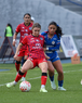 Cuernavaca, Morelos, 21 de marzo de 2026. Vasthy Delgado y Daniela Calderón, durante el partido correspondiente a la jornada 13 del torneo Clausura 2026 de la Liga BBVA MX Femenil, entre la Máquina Celeste del Cruz Azul y las Cañoneras del Mazatlán FC, realizado en el estadio de la Unidad Deportiva Centenario. Foto: Imago7/ Daniel Sydney