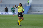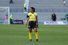Guadalupe, Nuevo León, 20 de marzo de 2026. Itzel Hernández Fuentes, árbitra central, durante el partido correspondiente a la jornada 13 del torneo Clausura 2026 de la Liga BBVA MX Femenil, entre las Rayadas del Monterrey y las Chivas Rayadas del Guadalajara, realizado en el estadio BBVA. Foto: Imago7/ Ricardo A. Rodríguez