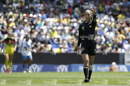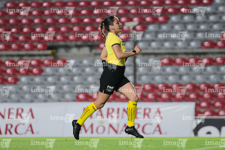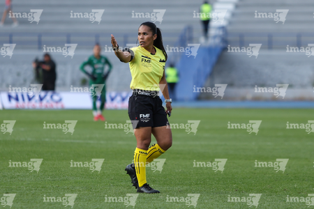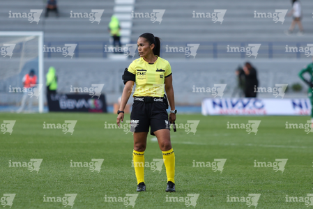 Puebla, Puebla, 22 de marzo de 2026. María Fernanda Márquez, árbitra central, durante el partido correspondiente a la jornada 13 del torneo Clausura 2026 de la Liga BBVA MX Femenil, entre el Club Puebla y las Águilas del América, realizado en el estadio Cuauhtémoc. Foto: Imago7/Mireya Novo