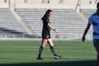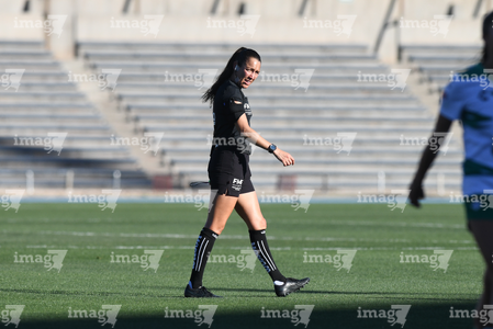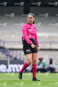 Ciudad de México, 22 de marzo de 2026. Lee Fernanda Natasha Galán Caballero, árbitra central, durante el partido correspondiente a la jornada 13 del torneo Clausura 2026 de la Liga BBVA MX Femenil, entre las Pumas de la UNAM y las Tuzas del Pachuca, realizado en el estadio Olímpico Universitario. Foto: Imago7/ Alexis Chavez