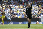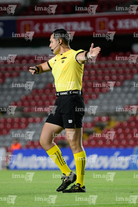 Toluca, Estado de México, 20 de marzo de 2026. Francia María González, árbitra central, durante el partido correspondiente a la jornada 13 del torneo Clausura 2026 de la Liga BBVA MX Femenil, entre las Diablas Rojas del Toluca y las Centellas del Necaxa, realizado en el estadio Nemesio Diez. Foto: Imago7/ Rafael Vadillo