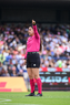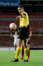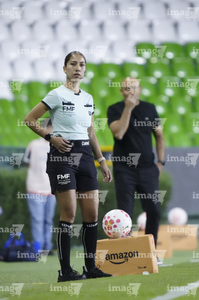 León, Guanajuato, 23 de marzo de 2026. Mariana Gómez Jaime, cuarta árbitra, durante el partido correspondiente a la jornada 13 del torneo Clausura 2026 de la Liga BBVA MX Femenil, entre las Esmeraldas del León y las Rojinegras del Atlas, realizado en el estadio León. Foto: Imago7/ Sebastian Laureano Miranda
