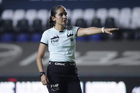 Ciudad Juárez, Chihuahua, 21 de marzo de 2026. Ana Paola Hernández, Arbitro Central, durante el partido correspondiente a la jornada 13 del torneo Clausura 2026 de la Liga BBVA MX Femenil, entre las Bravas de FC Juárez y las Guerreras de Santos Laguna, realizado en realizado en el estadio Olímpico Benito Juárez. Foto: Imago7/ Alejandro Rodríguez