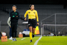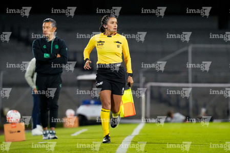 Ciudad de México, 27 de marzo de 2026. Paola Gabriela Martínez Loredo, , árbitra asistente, durante el partido correspondiente a la jornada 14 del torneo Clausura 2026 de la Liga BBVA MX Femenil, entre las Pumas de la UNAM y las Esmeraldas del León, realizado en el estadio Olímpico Universitario. Foto: Imago7/Diego Padilla