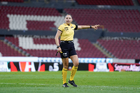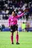 Mazatlán, Sinaloa, 27 de marzo de 2026. Diana Velázquez, árbitro central, durante el partido correspondiente a la jornada 14 del torneo Clausura 2026 de la Liga BBVA MX Femenil, entre las Cañoneras del Mazatlán FC y las Diablas Rojas del Toluca, realizado en el estadio El Encanto. Foto: Imago7/ Juan Carlos Cubeyro