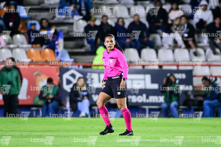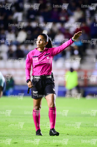 Cuernavaca, Morelos, 28 de marzo de 2026. Diana Contreras, árbitro central, durante el partido correspondiente a la jornada 14 del torneo Clausura 2026 de la Liga BBVA MX Femenil, entre la Máquina Celeste del Cruz Azul y el Club Puebla, realizado en el estadio de la Unidad Deportiva Centenario. Foto: Imago7/ Daniel Sydney