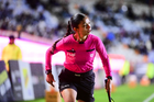 Torreón, Coahuila, 28 de marzo de 2026. Francia María González, árbitra central, durante el partido correspondiente a la jornada 14 del torneo Clausura 2026 de la Liga BBVA MX Femenil, entre las Guerreras de Santos Laguna y el Atlético San Luis, realizado en el estadio Corona. Foto: Imago7/ Saul Perales
