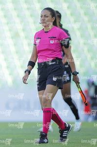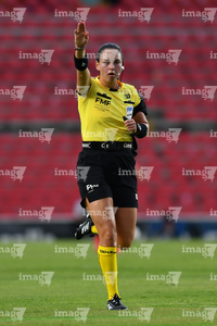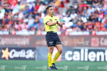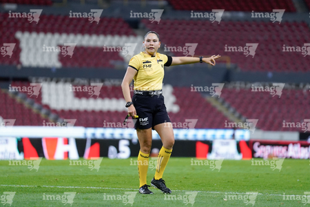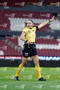 Guadalajara, Jalisco, 27 de marzo de 2026. Ana Cristina Guarneros, árbitra central, durante el partido correspondiente a la jornada 14 del torneo Clausura 2026 de la Liga BBVA MX Femenil, entre las Rojinegras del Atlas y las Centellas del Necaxa, realizado en el estadio Jalisco. Foto: Imago7/ Alejandro Lias