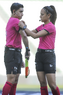 Torreón, Coahuila, 28 de marzo de 2026. Brayan Arturo Sosa, árbitro asistente, y María Fernanda Márquez, cuarta árbitra, durante el partido correspondiente a la jornada 14 del torneo Clausura 2026 de la Liga BBVA MX Femenil, entre las Guerreras de Santos Laguna y el Atlético San Luis, realizado en el estadio Corona. Foto: Imago7/ Saul Perales