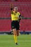 Pachuca, Hidalgo, 27 de marzo de 2026. Azucena Baños Cruz, árbitra asistente, durante el partido correspondiente a la jornada 14 del torneo Clausura 2026 de la Liga BBVA MX Femenil, entre las Tuzas del Pachuca y las Rayadas del Monterrey, realizado en el estadio Hidalgo. Foto: Imago7/ Alexis Chavez