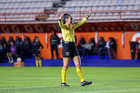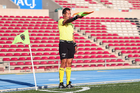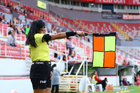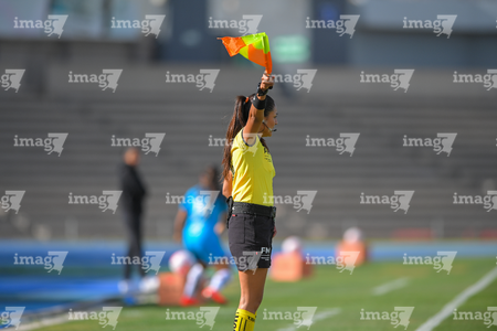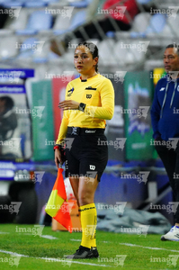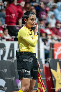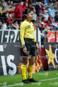 Aguascalientes, Aguascalientes, 5 de abril de 2026. Damaris Saray Jiménez, árbitra asistente, durante el partido correspondiente a la jornada 16 del torneo Clausura 2026 de la Liga BBVA MX Femenil, entre las Centellas del Necaxa y las Xolas de Tijuana, realizado en el estadio Victoria. Foto: Imago7/ Rogelio Dávila