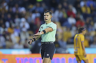 Ciudad Juárez, Chihuahua, 5 de abril de 2026. Fernando Alexis Portillo, árbitro central, durante el partido correspondiente a la jornada 16 del torneo Clausura 2026 de la Liga BBVA MX Femenil, entre las Bravas de FC Juárez y las Rayadas del Monterrey, realizado en realizado en el estadio Olímpico Benito Juárez. Foto: Imago7/ José Zamora