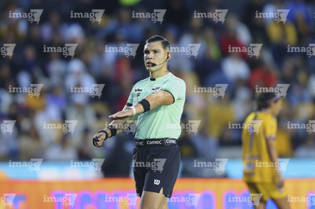 San Nicolás de los Garza, Nuevo León, 5 de abril de 2026. Alfredo Huerta López, árbitro central, durante el partido correspondiente a la jornada 16 del torneo Clausura 2026 de la Liga BBVA MX Femenil, entre las Tigres de la UANL y las Chivas Rayadas del Guadalajara, realizado en el estadio Universitario. Foto: Imago7/ Ricardo A. Rodríguez