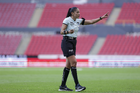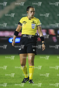 Pachuca, Hidalgo, 5 de abril de 2026. María Fernanda Márquez, árbitra central, durante el partido correspondiente a la jornada 16 del torneo Clausura 2026 de la Liga BBVA MX Femenil, entre las Tuzas del Pachuca y las Esmeraldas del León, realizado en el estadio Hidalgo. Foto: Imago7/ Elizabeth Hernández