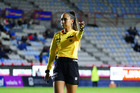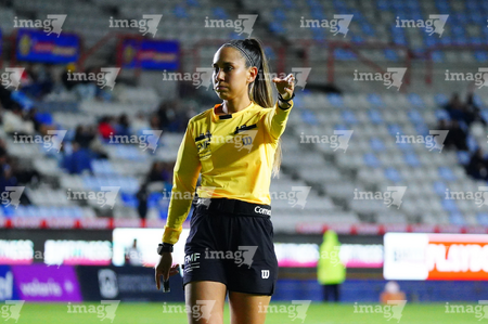 Pachuca, Hidalgo, 5 de abril de 2026. Montserrat Pérez Comellas, cuarta árbitra, durante el partido correspondiente a la jornada 16 del torneo Clausura 2026 de la Liga BBVA MX Femenil, entre las Tuzas del Pachuca y las Esmeraldas del León, realizado en el estadio Hidalgo. Foto: Imago7/ Jacqueline Pedraza
