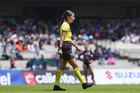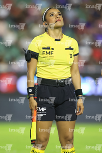 Mazatlán, Sinaloa, 5 de abril de 2026. Ximena Márquez Ruiz, árbitra central, durante el partido correspondiente a la jornada 16 del torneo Clausura 2026 de la Liga BBVA MX Femenil, entre las Cañoneras del Mazatlán FC y el Atlético San Luis, realizado en el estadio El Encanto. Foto: Imago7/ Saul Perales