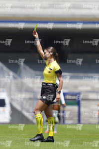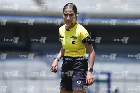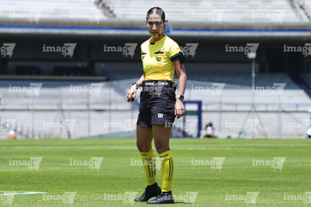 Ciudad de México, 5 de abril de 2026. Mariana Gómez Jaime, árbitra central, durante el partido correspondiente a la jornada 16 del torneo Clausura 2026 de la Liga BBVA MX Femenil, entre las Pumas de la UNAM y el Club Puebla, realizado en el estadio Olímpico Universitario. Foto: Imago7/Carlos Vargas