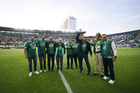 León, Guanajuato, 31 de enero de 2026. Protocolo, durante el partido correspondiente a la jornada 4 del torneo Clausura 2026 de la Liga BBVA MX, entre los Esmeraldas del León y los Tigres de la UANL, realizado en el estadio León. Foto: Imago7/ Sebastian Laureano Miranda