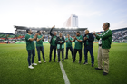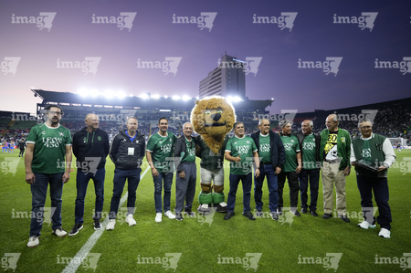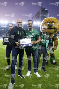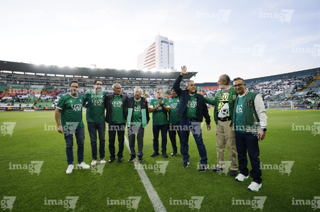 León, Guanajuato, 31 de enero de 2026. Exjugadores del León en un reconocimiento por los 450 años de la ciudad, durante el partido correspondiente a la jornada 4 del torneo Clausura 2026 de la Liga BBVA MX, entre los Esmeraldas del León y los Tigres de la UANL, realizado en el estadio León. Foto: Imago7/