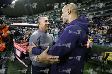 León, Guanajuato, 31 de enero de 2026. Ignacio Ambriz, director técnico y Guido Pizarro, director técnico, durante el partido correspondiente a la jornada 4 del torneo Clausura 2026 de la Liga BBVA MX, entre los Esmeraldas del León y los Tigres de la UANL, realizado en el estadio León. Foto: Imago7/ Duilio Muñoz