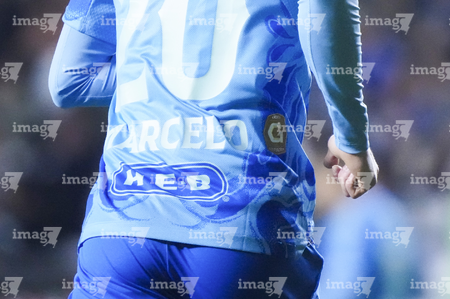 León, Guanajuato, 31 de enero de 2026. Parche de líder de goleo en el uniforme de Marcelo Flores, durante el partido correspondiente a la jornada 4 del torneo Clausura 2026 de la Liga BBVA MX, entre los Esmeraldas del León y los Tigres de la UANL, realizado en el estadio León. Foto: Imago7/ Sebastian Laureano Miranda