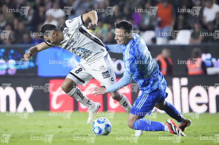 León, Guanajuato, 31 de enero de 2026. Juan Pablo Vigon y José Iván Rodríguez, durante el partido correspondiente a la jornada 4 del torneo Clausura 2026 de la Liga BBVA MX, entre los Esmeraldas del León y los Tigres de la UANL, realizado en el estadio León. Foto: Imago7/ Sebastian Laureano Miranda