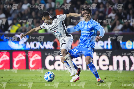 León, Guanajuato, 31 de enero de 2026. Stiven Barreiro y Ozziel Herrera, durante el partido correspondiente a la jornada 4 del torneo Clausura 2026 de la Liga BBVA MX, entre los Esmeraldas del León y los Tigres de la UANL, realizado en el estadio León. Foto: Imago7/ Duilio Muñoz