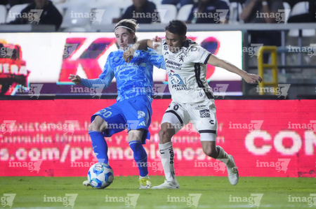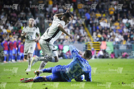 León, Guanajuato, 31 de enero de 2026. Juan Pablo Domínguez y Joaquim Pereira, durante el partido correspondiente a la jornada 4 del torneo Clausura 2026 de la Liga BBVA MX, entre los Esmeraldas del León y los Tigres de la UANL, realizado en el estadio León. Foto: Imago7/