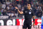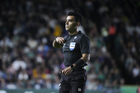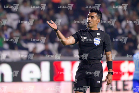 León, Guanajuato, 31 de enero de 2026. Adonai Escobedo, árbitro central durante el partido correspondiente a la jornada 4 del torneo Clausura 2026 de la Liga BBVA MX, entre los Esmeraldas del León y los Tigres de la UANL, realizado en el estadio León. Foto: Imago7/ Sebastian Laureano Miranda