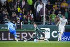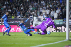 León, Guanajuato, 31 de enero de 2026. Marcelo Flores anota gol, durante el partido correspondiente a la jornada 4 del torneo Clausura 2026 de la Liga BBVA MX, entre los Esmeraldas del León y los Tigres de la UANL, realizado en el estadio León. Foto: Imago7/ Sebastian Laureano Miranda