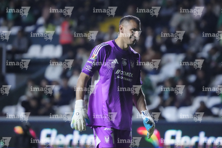 León, Guanajuato, 31 de enero de 2026. Nahuel Guzmán, durante el partido correspondiente a la jornada 4 del torneo Clausura 2026 de la Liga BBVA MX, entre los Esmeraldas del León y los Tigres de la UANL, realizado en el estadio León. Foto: Imago7/ Sebastian Laureano Miranda