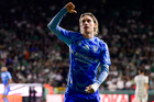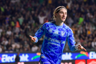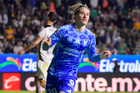 León, Guanajuato, 31 de enero de 2026. Diego Lainez en festejo de gol, durante el partido correspondiente a la jornada 4 del torneo Clausura 2026 de la Liga BBVA MX, entre los Esmeraldas del León y los Tigres de la UANL, realizado en el estadio León. Foto: Imago7/ Sebastian Laureano Miranda