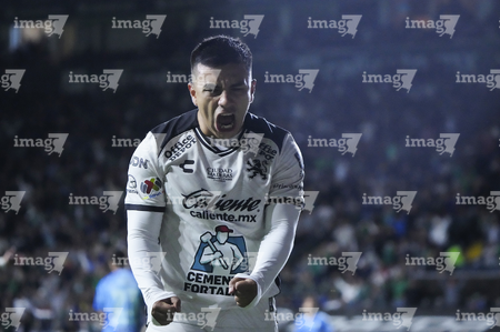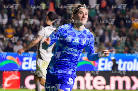 León, Guanajuato, 31 de enero de 2026. Fernando Beltrán "Nene" en festejo, durante el partido correspondiente a la jornada 4 del torneo Clausura 2026 de la Liga BBVA MX, entre los Esmeraldas del León y los Tigres de la UANL, realizado en el estadio León. Foto: Imago7/ Sebastian Laureano Miranda