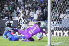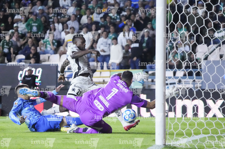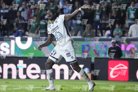 León, Guanajuato, 31 de enero de 2026. Diber Cambindo anota gol, durante el partido correspondiente a la jornada 4 del torneo Clausura 2026 de la Liga BBVA MX, entre los Esmeraldas del León y los Tigres de la UANL, realizado en el estadio León. Foto: Imago7/ Sebastian Laureano Miranda