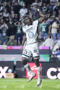 León, Guanajuato, 31 de enero de 2026. Diber Cambindo en festejo de gol, durante el partido correspondiente a la jornada 4 del torneo Clausura 2026 de la Liga BBVA MX, entre los Esmeraldas del León y los Tigres de la UANL, realizado en el estadio León. Foto: Imago7/ Duilio Muñoz
