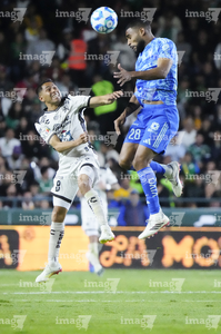 León, Guanajuato, 31 de enero de 2026. Diber Cambindo y Vladimir Loroña, durante el partido correspondiente a la jornada 4 del torneo Clausura 2026 de la Liga BBVA MX, entre los Esmeraldas del León y los Tigres de la UANL, realizado en el estadio León. Foto: Imago7/ Duilio Muñoz
