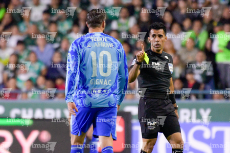 León, Guanajuato, 31 de enero de 2026. André-Pierre Gignac y Adonai Escobedo, árbitro central, durante el partido correspondiente a la jornada 4 del torneo Clausura 2026 de la Liga BBVA MX, entre los Esmeraldas del León y los Tigres de la UANL, realizado en el estadio León. Foto: Imago7/ Duilio Muñoz