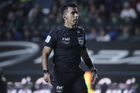 León, Guanajuato, 31 de enero de 2026. Adonai Escobedo, árbitro central, durante el partido correspondiente a la jornada 4 del torneo Clausura 2026 de la Liga BBVA MX, entre los Esmeraldas del León y los Tigres de la UANL, realizado en el estadio León. Foto: Imago7/ Sebastian Laureano Miranda