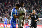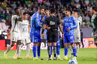 León, Guanajuato, 31 de enero de 2026. Stiven Barreiro en conato de bronca, durante el partido correspondiente a la jornada 4 del torneo Clausura 2026 de la Liga BBVA MX, entre los Esmeraldas del León y los Tigres de la UANL, realizado en el estadio León. Foto: Imago7/ Sebastian Laureano Miranda
