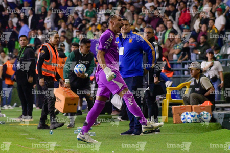 León, Guanajuato, 31 de enero de 2026. Nahuel Guzmán en festejo, durante el partido correspondiente a la jornada 4 del torneo Clausura 2026 de la Liga BBVA MX, entre los Esmeraldas del León y los Tigres de la UANL, realizado en el estadio León. Foto: Imago7/ Duilio Muñoz